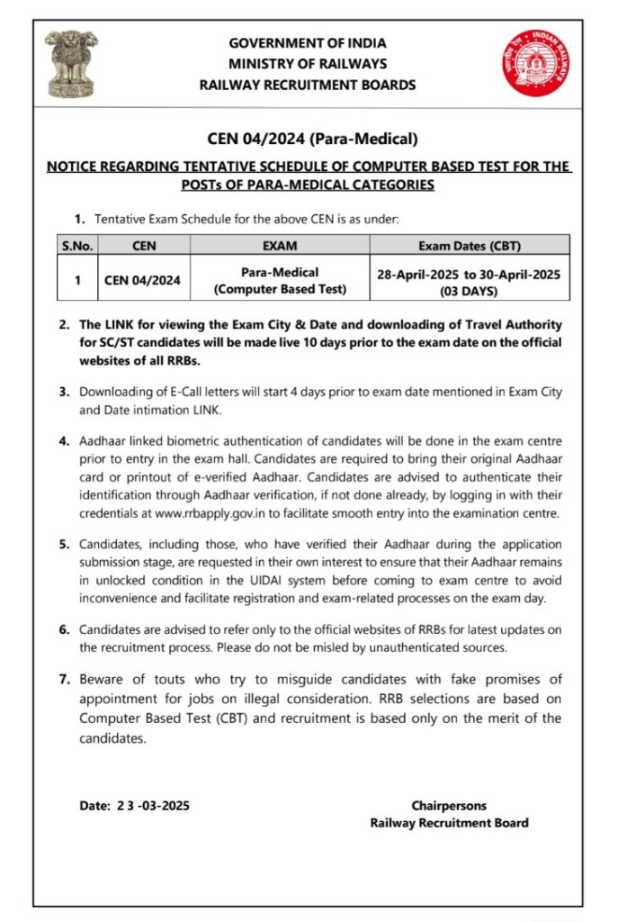 | परीक्षा का नाम | RRB Paramedical Exam 2025 |